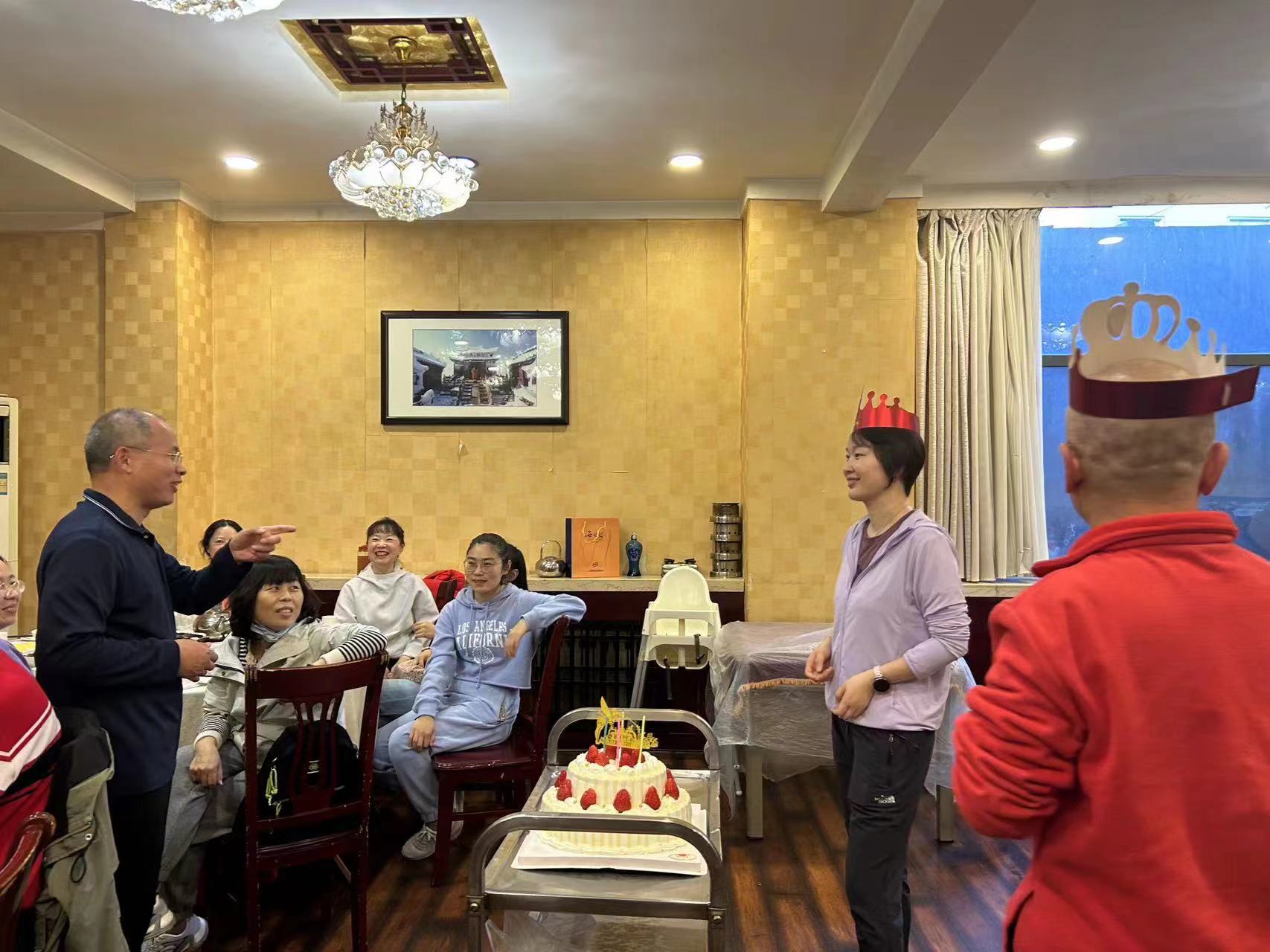 領(lǐng)導(dǎo)和同事們?yōu)樯盏膯T工慶祝生日